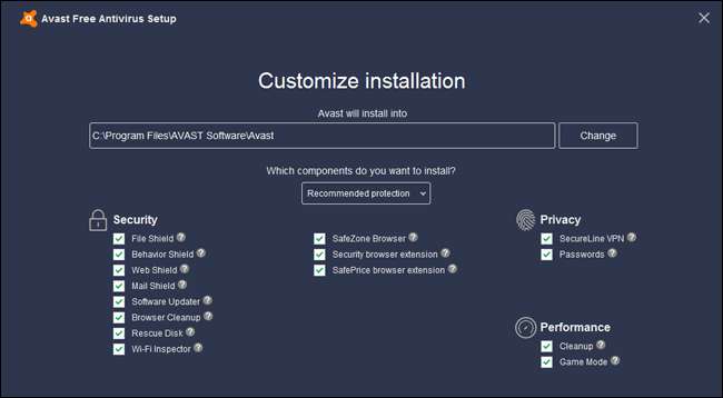 यदि आप किसी कारण से विंडोज डिफेंडर से नफरत करते हैं और किसी अन्य एंटीवायरस का उपयोग करना चाहते हैं, तो आप उपयोग कर सकते हैं Avira । यह है एक नि: शुल्क संस्करण यह काफी अच्छा काम करता है, एक प्रो संस्करण कुछ अतिरिक्त सुविधाओं के साथ, और यह महान सुरक्षा स्कोर प्रदान करता है और केवल सामयिक पॉपअप विज्ञापन (लेकिन यह) है कर देता है पॉपअप विज्ञापन हैं, जो कष्टप्रद हैं)। सबसे बड़ी समस्या यह है कि आपको उस ब्राउज़र एक्सटेंशन को अनइंस्टॉल करना सुनिश्चित करने की आवश्यकता है जो आप पर बल देने की कोशिश करता है, जिससे गैर-तकनीकी लोगों के लिए सिफारिश करना मुश्किल हो जाता है।