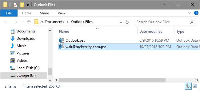 आउटलुक एक फाइल एक्सप्लोरर विंडो को खोलेगा जिसमें आपकी पीएसटी फाइल (या यदि आप एक खाते का उपयोग करते हैं, तो OST फाइल) वाले फ़ोल्डर को दिखाते हैं।