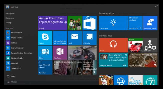नया स्टार्ट मेनू दोनों दुनिया के लिए सबसे अच्छा है। परंपरावादियों को अपने स्थापित अनुप्रयोगों की सूची वापस मिल जाएगी और स्टार्ट स्क्रीन के प्रशंसकों को उनकी लाइव टाइलें मिलेंगी। और सबसे अच्छा हिस्सा? यह स्टार्ट स्क्रीन या विंडोज 7 स्टार्ट मेनू की तुलना में बेहतर दिखता है और काम करता है।
