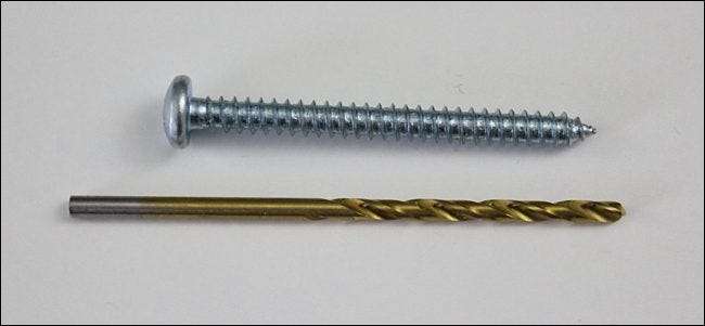 अपने पेंच उठाओ और उस पर एक करीब से नज़र डालें। आप मुख्य सिलेंडर को पेंच और धागे के बीच नीचे जा रहे सिलेंडर के चारों ओर लपेटते हुए देखेंगे। आपकी ड्रिल बिट आदर्श रूप से उस मध्य सिलेंडर के समान व्यास की होनी चाहिए।