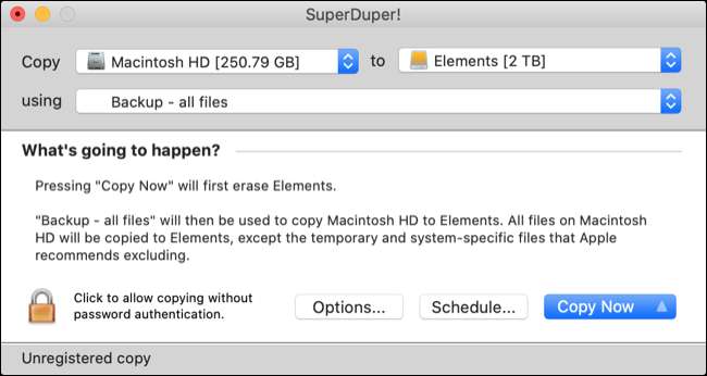 Frissítés a Superduper-re! Egy kicsit több mint 30 dollárért nettél nettél olyan hasznos funkciók, mint az intelligens frissítés, amely indexeli a fájlokat, és csak a módosításokat (például az időgépet), valamint az ütemezési és szkriptelési funkciókat tartalmazza. Ha a Superduper használatát tervezi! A Mac rendszeres biztonsági mentéséhez a frissítés megéri.