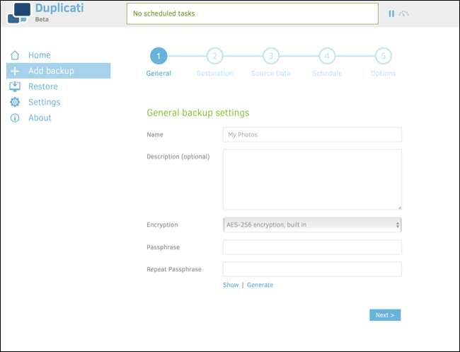 Ha már van online tárhely, hogy szeretné használni egy távoli mentés, Duplicati egy ingyenes és nyílt forráskódú megoldás, mely lehetővé teszi, hogy erre. A cross-platform alkalmazás működik a Windows, MacOS és Linux; lehetővé teszi, hogy tárolja az összes mentést egy helyen.