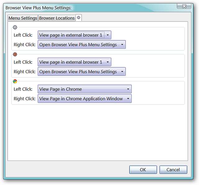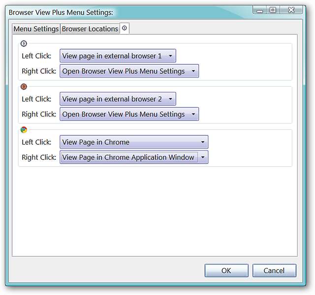 A Browser View Plus egy nagyon szép kiterjesztés, amelyet telepítettek, ha úgy találja, hogy gyakran szüksége van más böngészőkben lévő linkek megnyitására. Egy másik nagy előny, hogy csak az eszköztár gombjait használhatja, csak a Jobb kattintás menü opciót, vagy mindkettőt együtt használhatja személyes preferenciái alapján.