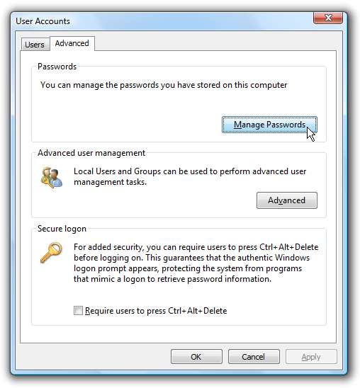 Azok számára, akik nem ismerik, használhatja ezt a segédprogramot a mentett hálózati jelszavak kezelése vagy megköveteli a Ctrl + Alt + Delete billentyűkombinációt.