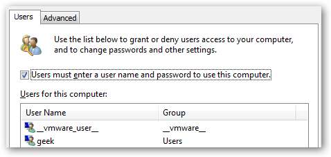 A Felhasználók lapon is engedélyezheti az automatikus bejelentkezést, törölve a „A felhasználóknak felhasználói nevet és jelszót kell beírnia” négyzet bejelölését.