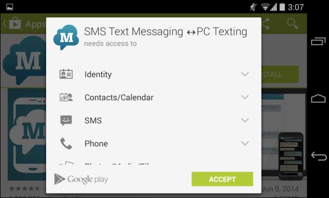 A Google Play most csoportosítja az alkalmazásengedélyeket a kapcsolódó engedélyek csoportjaiba. Például egy alkalmazás számára, amely el akarja olvasni a bejövő SMS-eket, szüksége lesz az „SMS-üzenetek olvasása” engedélyre. Amikor a Play Áruházon keresztül telepíti, látni fogja, hogy az „SMS” engedélycsoportot kéri.