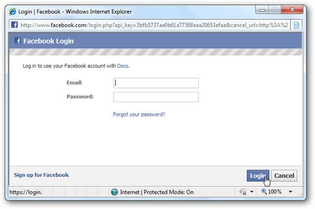 Látogasson el a Docs.com webhelyre, és kezdje el megosztani az Office dokumentumokat Facebook-barátaival. Kattints a Bejelentkezés linket a jobb oldalon, hogy hozzáadd a Facebook-hoz.