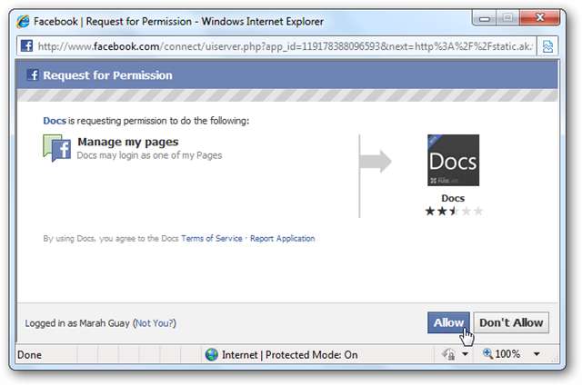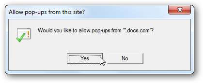 A Dokumentumok engedélyt kérhet az oldalai kezeléséhez, amikor megpróbál feltölteni egy dokumentumot. Kattintson a gombra Lehetővé teszi folytatni.