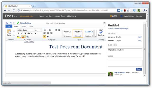 Nemrégiben megnéztük a új Office webalkalmazások a SkyDrive-on , és izgatottan várták a funkciókat, de azt kívánták, bárcsak többet tehetnének. A szokásos Office Web Apps egyik fő problémája, hogy kevesen használják naponta a Windows Live SkyDrive programot. Ez azt jelenti, hogy ha online szeretne megosztani egy dokumentumot egy barátjával, akkor regisztrálnia kell egy új fiókot, és meg kell találnia, hogyan kell használni. A Docs.com egy új szolgáltatás, amely elveszíti ezt a bonyolultságot. Integrálja a webalkalmazásokat a Facebook-szal, és lehetővé teszi a dokumentumok együttműködését a Facebook-barátaival. Nézzük meg, hogyan használhatja ezt barátaival és kollégáival.