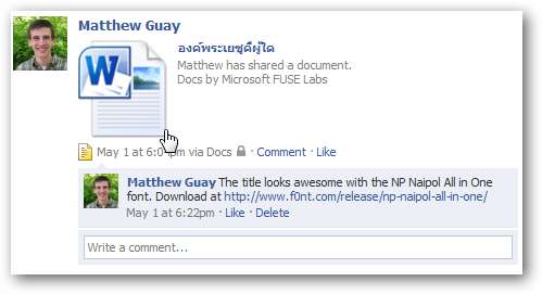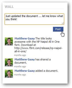 Amint azt korábban megjegyeztük, közzétehet a Facebookon, amikor megosztott egy dokumentumot. Ez egy szép megjelenésű bejegyzést jelent a falon, amely tájékoztatja barátait és segít nekik megtalálni a dokumentumot.