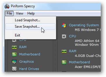 A Speccy nagyon részletes információkat nyújt a hardverről, és ezek nagyon hasznos információk lehetnek a problémák elhárításakor. Ez lehetővé teszi, hogy pillanatfelvételt készítsen a számítógép jelenlegi hardveres adatairól, hogy később megtekinthesse aktuális adatait, vagy akár el is küldhesse azokat egy ügyfélszolgálati csapatnak, hogy ők is láthassák, mi van a számítógépen.