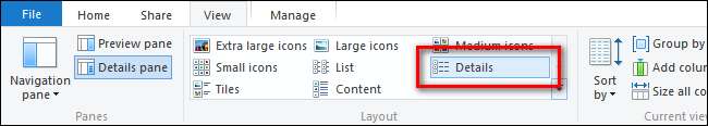 Hozzáférhet a Fájl -> Nézet -> Részletek vagy a jobb egérgombbal a helyi mappa helyi menüjén keresztül. Ha sok munkát végez sok mappával, érdemes megváltoztatnia a mappanézetet az egész rendszeren, ha a Fájl -> Nézet -> Beállítások elemre navigál, majd a Mappa beállításai menüben válassza a Nézet lapot, majd a Az „Alkalmazás mappákhoz” gomb az összes mappára alkalmazza a kiválasztott nézetet.