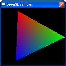 Itt láthat egy képernyőképet egy kis, Triangle.exe nevű C ++ programról, amely az OpenGL API-n alapuló forgó háromszöggel rendelkezik.