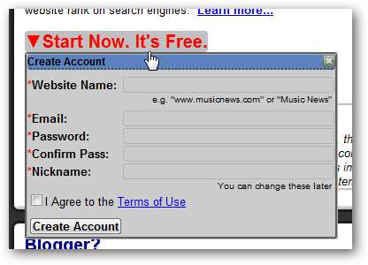Először regisztrálnia kell egy Pnyxe-fiókot. Böngésszen a webhelyükre ( link alatt ), és kattintson a gombra Indítás most link a címlapon. Írja be Tumblr blogjának nevét vagy webcímét, valamint e-mail címét, jelszavát és becenevét. Fogadja el a felhasználási feltételeket, majd kattintson a gombra Fiók létrehozása .
