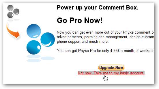 Felajánljuk, hogy frissítsen Pro-fiókra, és további testreszabási és kezelési lehetőségeket kínál. Ha csak az ingyenes verziót szeretné használni, kattintson a gombra Nem most hogy menjen az adminisztrációs irányítópultra.
