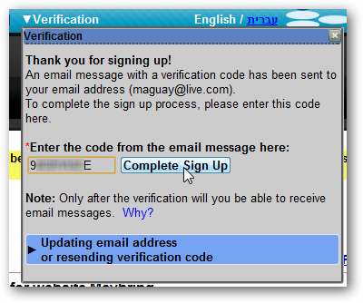 Ha még nem aktiválta, akkor a rendszer megkéri, amikor először bejelentkezik az adminisztrációs irányítópultra. Írja be az ellenőrző kódot az e-mailben, majd kattintson a gombra Teljes Regisztráció .