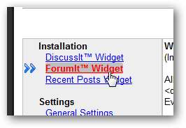Miután aktiválta fiókját, elkezdheti hozzáadni a Tumblr blogjához. Alapértelmezés szerint látni fogja a megbeszéli widget, amely hasonlóan működik, mint a Disqus megjegyzései. Fórumot szeretnénk felvenni a blogunkba, ezért válassza ki a ForumIt Widget link a bal oldali alatt Telepítés .