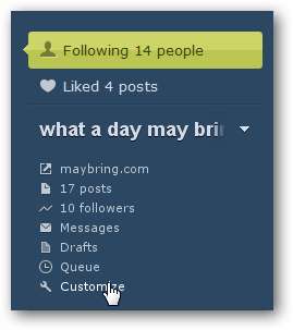 Most a Tumblr-ben nyissa meg a Testreszab oldalt az irányítópultról.