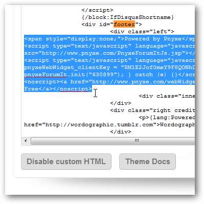 Most keresse meg a lábléc div blokk, és illessze be a Pnyxe kódot a következő </div> elé.