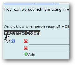 Tól Haladó beállítások , a poszterek választhatnak, hogy felmérést adnak-e a fórum témájukhoz.