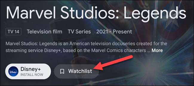 Alternatív megoldásként kiválaszthatja a film vagy a TV-show-t, és használja a "Watchlist" -et a részletek oldalon.