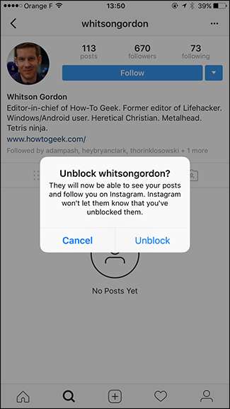 Ha fel akarja oldani valaki feloldását, csak fordítsa meg a folyamatot. Lépjen a profiljukra, koppintson a három pontra, és érintse meg kétszer a Feloldás feloldását.