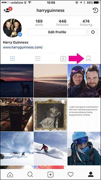A Mentett fotók megtekintéséhez lépjen a profiljára, és érintse meg a könyvjelző ikont a jobb oldalon.