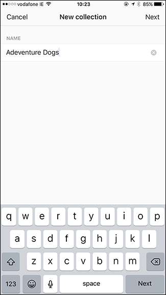 Mentett fotók gyűjteményeit is létrehozhatja. Koppintson a + ikonra a jobb felső sarokban, majd írja be a gyűjtemény nevét.
