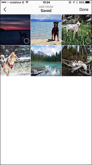 Koppintson a Tovább gombra, majd válassza ki a Mentett közül a hozzáadni kívánt fotókat.