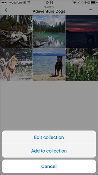 Ha további fotókat szeretne hozzáadni egy már létrehozott gyűjteményhez, jelölje ki, majd koppintson a jobb felső sarokban található három pontra, majd a Hozzáadás a gyűjteményhez elemre.