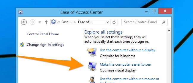 Először nyissa meg a Vezérlőpultot, majd lépjen a Könnyű hozzáférés lehetőségre, majd válassza a „Könnyebbé tegye a számítógépet” lehetőséget, amelyet „Vizuális megjelenítés optimalizálása” néven is használhat, attól függően, hogy a panel melyik részébe kerül.