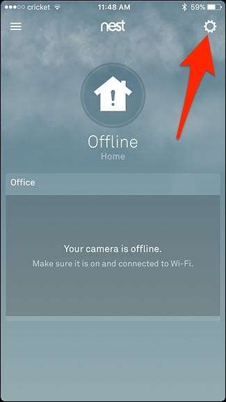 Az indításhoz nyissa meg a Nest alkalmazást, és érintse meg a képernyő jobb felső sarkában található Beállítások fogaskerék ikont.