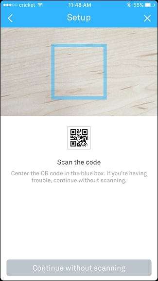 Telefonjával beolvashatja a QR-kódot, amely a Nest Cam hátoldalán található, és miután észlelte, automatikusan a következő képernyőre visz.