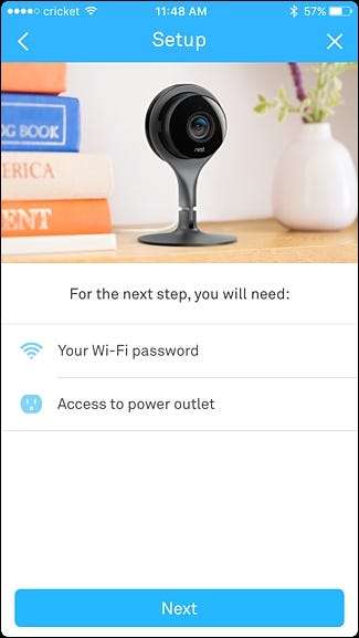 Győződjön meg róla, hogy a Nest Cam be van dugva, és nyomja meg újra a „Folytatás” gombot.