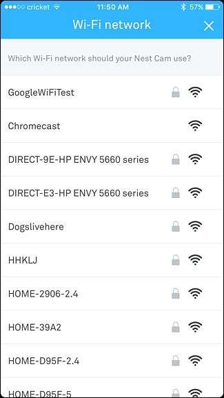 Várja meg, amíg a Nest Cam elindul, majd válassza ki az új Wi-Fi hálózatot a listából.
