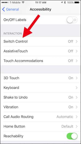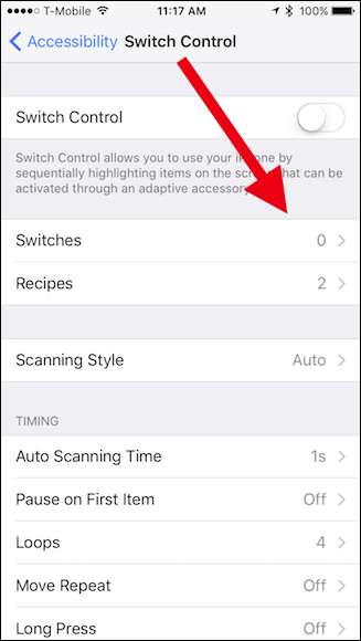 Mielőtt bekapcsolnánk a Switch Control funkciót, először határozzuk meg kapcsolóinkat. A folytatáshoz érintse meg a „Kapcsolók” opciót.