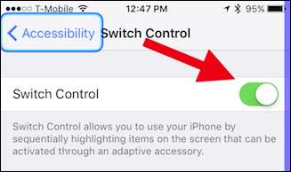 Ne felejtse el bekapcsolni a kapcsolóvezérlést (a képernyő kék színű lesz), ha meghatározta a fej mozgását, vagy nem fog működni. Ezt úgy teheti meg, hogy visszatér a Switch Control képernyőre, és megérinti a gombot.