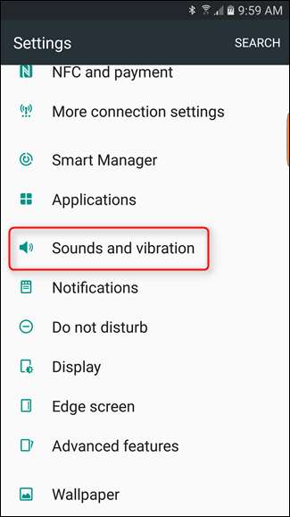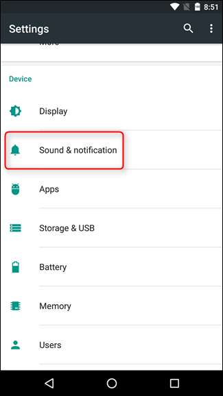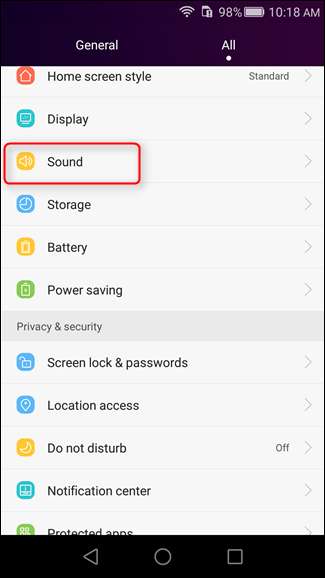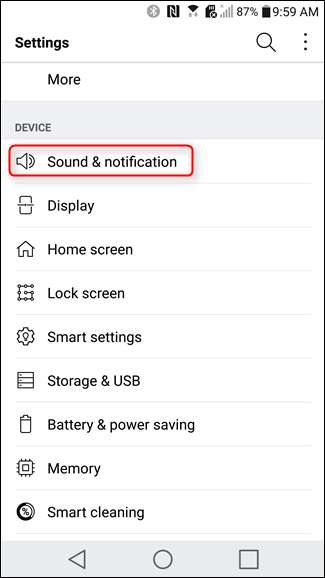 Innen görgessen le a hang részig - ez a „Hangok és rezgés” a Galaxy készülékeken, és a „Hang és értesítés” az LG készülékeken.