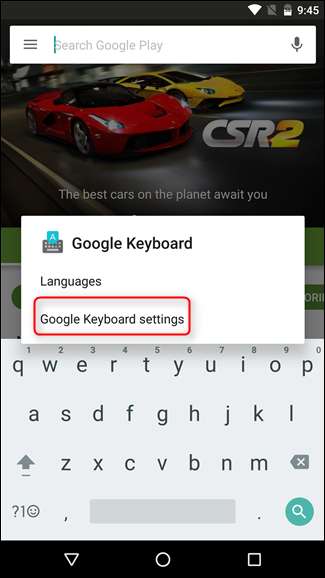 Ha az érintési rezgéseket is el szeretné távolítani a billentyűzetről, nyissa meg valamilyen szövegdobozt, és nyomja meg hosszan a billentyűt a szóköz bal oldalán, majd koppintson a „Google billentyűzet beállításai” elemre.