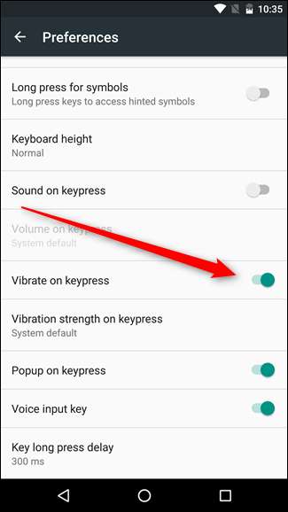A Stock Android-tól eltérően ez eltávolítja a vibrációt a Samsung és az LG megfelelő billentyűzeteiről is. Ha véletlenül a Google billentyűzetet használja, akkor eltávolíthatja a rezgéseket a fenti „Android készlet” szakasz utasításainak betartásával.