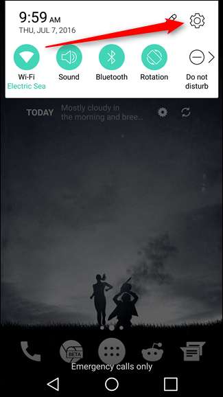 Ha Samsung vagy LG kézibeszélőt hintázik, akkor először be kell ugrania a Beállítások menübe úgy, hogy lenyomja az értesítési felületet, és megérinti a fogaskerék ikont.