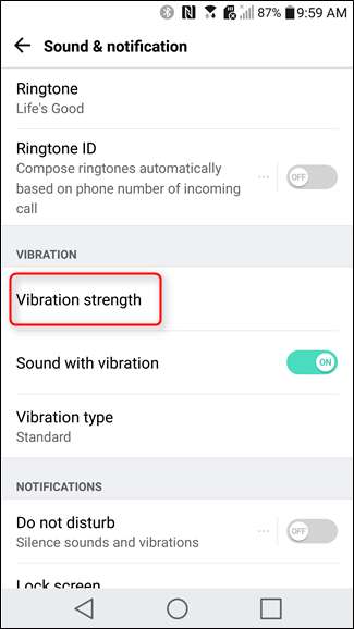 Most a rezgés megváltoztatásának módját keresi - a Samsungnál ez a beállítás a „Rezgésintenzitás” feliratú. az LG-n ez a „Rezgéserősség”.