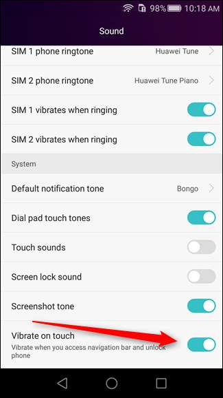 Minden készülék alsó csúszkája vezérli a haptikus visszacsatolást. Csak tiltsa le teljesen balra a letiltáshoz. Könnyű peasy.