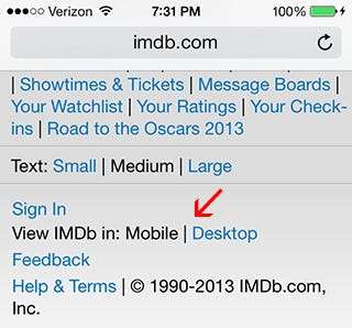 Természetesen a webhely asztali verziójához a legegyszerűbben úgy lehet választani, ha az oldalon az asztali nézet linket választjuk - bár a legtöbb oldalnak nincs ilyen.