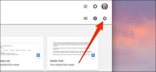 Menj drive.google.com a Google Drive eléréséhez, és kattintson az ablak jobb felső sarkában lévő Beállítások fogaskerék ikonra.