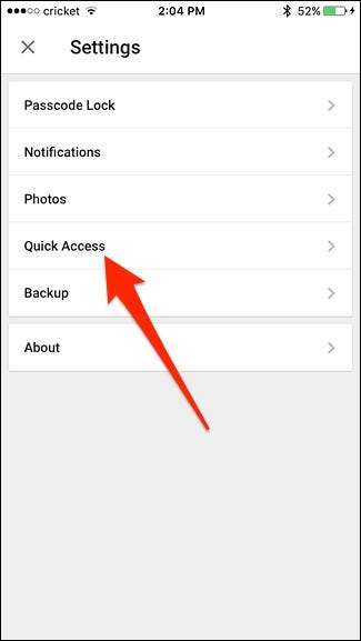 Érintse meg a „Gyors elérés” elemet.