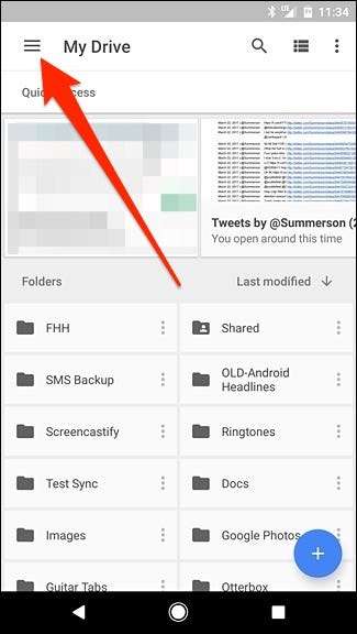 Android rendszeren nyissa meg a Google Drive alkalmazást, és érintse meg a menü gombot a bal felső sarokban.