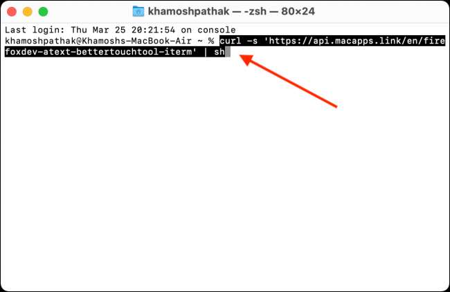 Amikor a terminál ablak, kattintson egyszer az ablakon belül, majd nyomja meg a Command + V billentyűt illeszteni a link. Ezt követően nyomja meg a Vissza gombot.