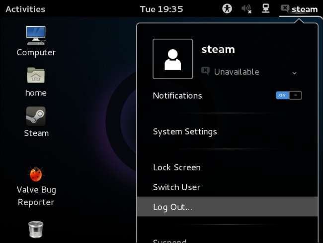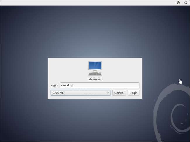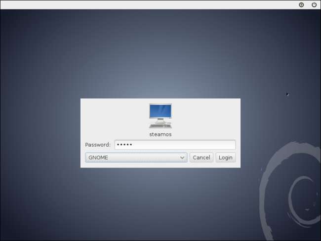 Még nem fejezte be a telepítési folyamatot. Az első indítás után a SteamOS-ban megjelenik egy bejelentkezési képernyő. Jelentkezzen be a rendszerbe a „steamos” fióknévvel és a „steam” jelszóval. Válassza ki a GNOME munkamenetet.