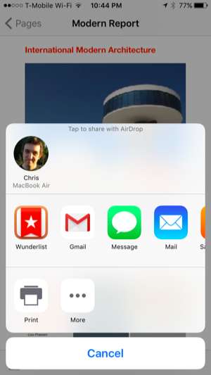 A fájlok megérintésével megtekintheti őket, áthelyezheti, törölheti vagy megoszthatja őket. A „Kiválasztás” elemre koppintva egyszerre több fájlt is kijelölhet, és a Törlés vagy az Áthelyezés gombokkal törölheti a fájlokat vagy áthelyezheti őket más mappákba. Van egy Megosztás gomb is, amely lehetővé teszi, hogy megossza ezeket a fájlokat más alkalmazásokkal, kinyomtassa őket, másoknak elküldhesse őket az AirDropon keresztül, vagy más műveleteket hajtson végre. a rendszer megosztási lapjának használatával . Húzza le a képernyő tetejét a fájlok dátum, név vagy címke szerinti rendezéséhez vagy a nézet módosításához.